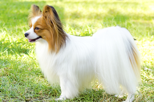 Papillons are known for their large, butterfly-shaped ears, as their name suggests. These tiny dogs have been depicted in paintings as far back as the 1500s. Since they weigh an average of 8-10lbs, it’s no wonder they were seen as lap dogs then as well!