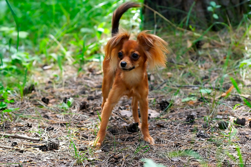 This tiny Russian breed weighs an average of 3-6lbs. There are both a short coated and long coated variety, but both are equally tiny, standing between 8-10 inches tall. Originally bred to fight rats, they are vocal little dogs that have a lot of personality!