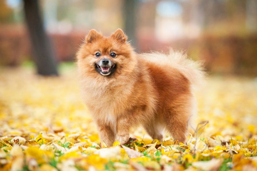 This spunky little fuzz ball is a spitz type breed, and definitely a popular pet. They stand between 5-11 inches tall and weigh a mere 4-8 pounds. In other words, if some "pom poms" look large, it's all fur and personality that's filling them out.