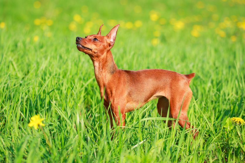 Love the look of a Doberman but need a dog that fits in a small apartment? Voila! Meet the min pin. This is quite an old breed, originating in Germany, and wasn't created to be a mini version of anything. It just happened to be named as if it were when it was introduced to the U.S. The breed stems from a mix of dachshund, Italian greyhound and goodness knows what else over its long history.