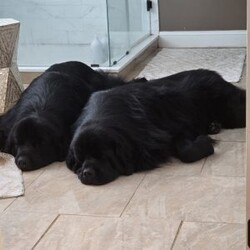 This beautiful black Newfoundland puppy is AKC registered and full of potential! He’s currently being raised indoors in our family home, surrounded by his littermates and both parents. From the very beginning, he’s been handled with care and love, ensuring a well-socialized and confident start to life. Newfoundlands are known for their gentle, loyal, and affectionate nature—and this little one is already showing those wonderful traits.