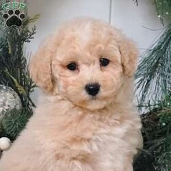 Evie is a gentle natured Bich-Poo puppy who is lovable as can be! She comes home with a 30 day health guarantee plus an extended genetic health guarantee, both provided by the breeder. Evie has been seen by a vet and is up to date on shots and de-wormer. She is well socialized and ready to meet you!