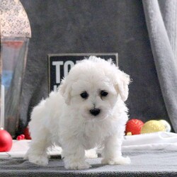 Jolly is a sweet natured Bichon Frise puppy who loves to play! This cutie can be registered with the ACA and comes home with a 30 day health guarantee as well as an extended genetic health guarantee, both provided by the breeder. Jolly has been seen by a vet and is up to date on shots and de-wormer. She is well socialized, family raised with children, and ready to meet you!