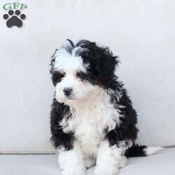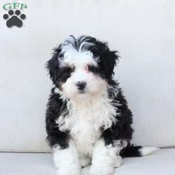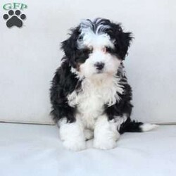 Layla is 1 of 6 in her litter , with an approximate adult weight of 25 to 35 pounds . She’s got a gorgeous thick coat with beautiful curls .