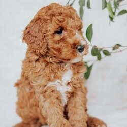 Meet our adorable mini goldendoodle puppies.They are raised on our family farm around our small children.They are dewormed,vaccinated and come with a 30 day health guarantee.The sire is a 30 lb mini goldendoodle and the dam is a 40 lb mini goldendoodle.If you are interested in adopting one of these puppies feel free to contact Jonas anytime.