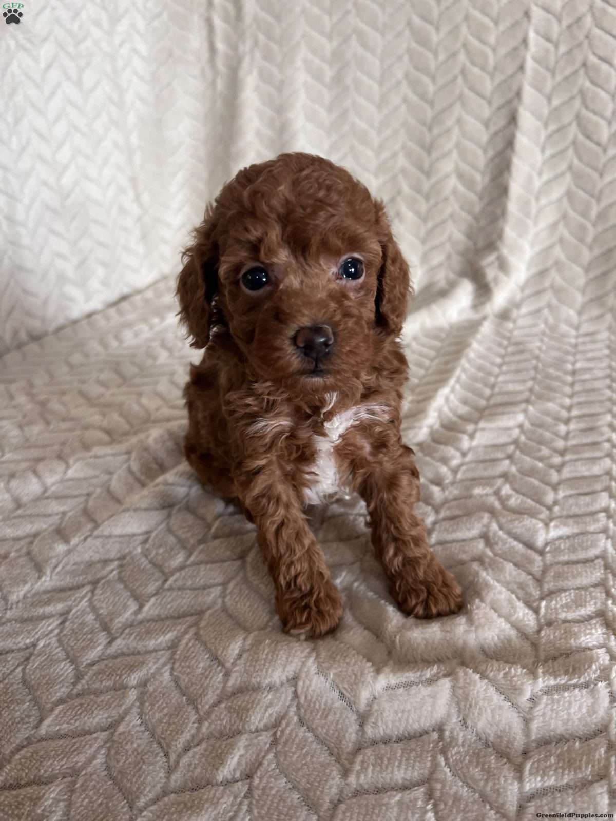 Meet Allie! These sweet AKC-registered Toy Poodle puppies are raised with lots of love and attention. They are microchipped and come from genetically tested parents, Rambo (4.5 lbs) and Posy (9 lbs). Each puppy is vet checked, up to date on shots and wormer, and goes home with a 30-day health guarantee plus a 2-year genetic health guarantee. Raised around kids, they are well socialized, playful, and affectionate with great little temperaments. They’re truly wonderful pups looking for loving homes. Allie has an approximated adult weight of 7-9 lbs.